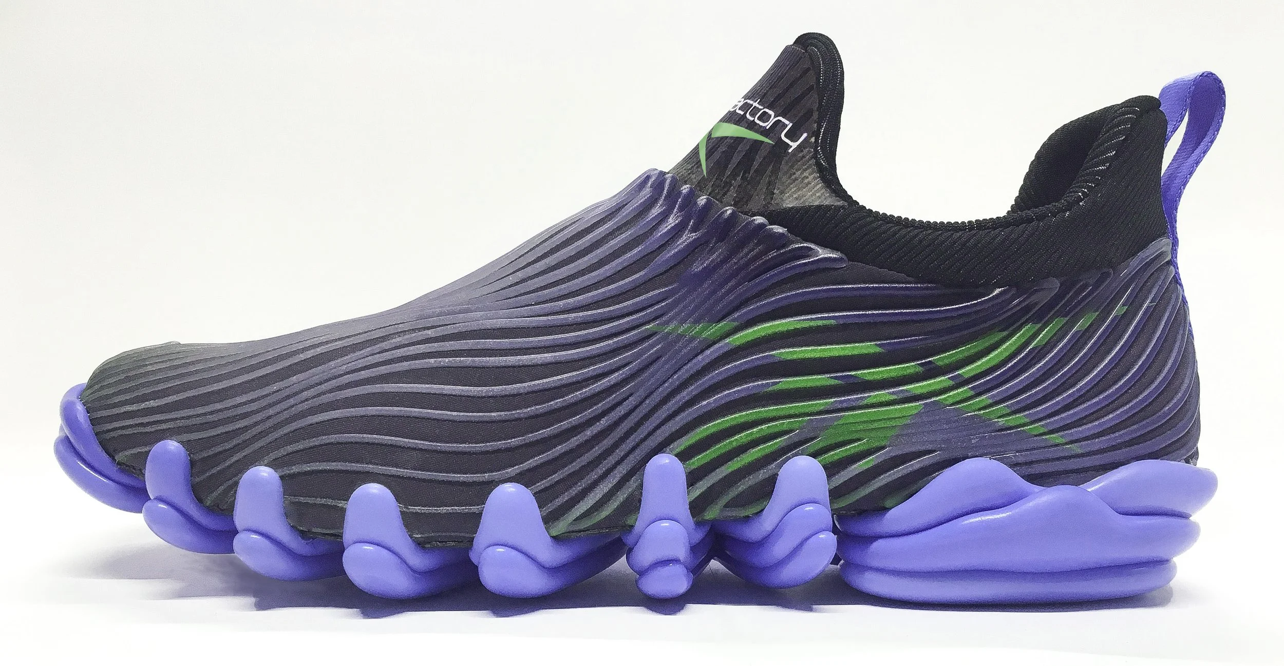 Liquid Factory represented a new way to build product robotically. This involved robotically dispensing Polyurethane. Footwear was built without the use of molds and we were able to create product without the impact of local labor rates. Designs were made to leverage the new medium and process. The concept was to ultimately build product locally in the country of distribution. Built by robots. This effort generated a huge amount of press and media for the brand as it represented a completely new way to manufacture footwear. A limited run of footwear was produced and several years of exploration was generated by talented team.